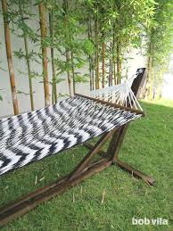 Backyard hammock stand. Multi person hammocks are great for large patios while a hammock with canopy is perfect for a sunny backyard. Plus it features a metal stand and the cotton is tightly woven for comfort. Aluminum hammock stand in bronze the 15 ft.
