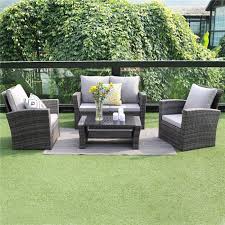 Giantex 3 pcs cushioned outdoor wicker patio set convention bistro set garden lawn sofa furniture 413. The perfect addition to patios ad sunrooms it includes two ultra comfortable lounge chairs a coffee table with a beautiful. Maxwell 5 piece all weather wicker patio conversation set with gas fire pit table and gray cushions stay warm by the fire and have comfortable stay warm by the fire and have comfortable outdoor seating all within 1 complete purchase.