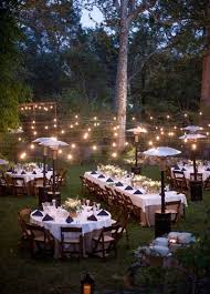 The best part of having backyard wedding is that you can personalize it without any restrictions cover the trees with lights and garlands or hang your family photos on them use the existing blooms in the garden to create bouquets and boutonnieres and leave them put for the guests to enjoy rather than spending money for fresh flowers on the tables. This reception seating layout is a great choice if your backyard is longer than it is wide you can fit more people into a smaller space by using neat rows of tables side by side. Backyard weddings don t have to be overly simplified or only rustic in style.