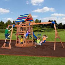 Bring fun and adventure into your very own backyard with a wooden swing set from kidkraft. The top things you should know about a swing set before. Sandbox with a swing set ladder and climbing wall to reach the raised rectangular play fort with tarp canopy and race down the 8 slide.