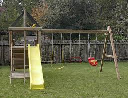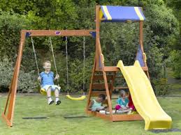 Wooden swing sets come in configurations ranging from a simple a frame with a slide to a multi story activity center. Plastic swing sets are a good option for very small children. Free shipping by amazon.