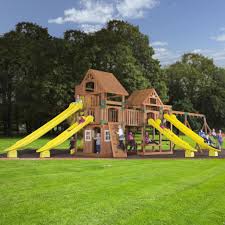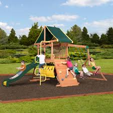 Wooden swing sets are an aesthetically pleasing option for your backyard but also offer fun features for kids like fort spaces and hideaways that aren t commonly seen on more minimal metal swing sets the skyfort ii cedar playset from backyard discovery is a popular pick for a wooden swing set that looks great is easy to build and offers plenty of fun activities. Package and installation of backyard swing sets. Kids love a trip to the playground but when you can t make it to the park your backyard is the next best thing.