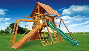Deck out your backyard with a swing set even better if it s a full on play set. Wooden swing sets come in configurations ranging from a simple a frame with a slide to a multi story activity center. Powder coated steel and uv protected polyethylene plastic prevent rusting and splintering and are made to last a lifetime.